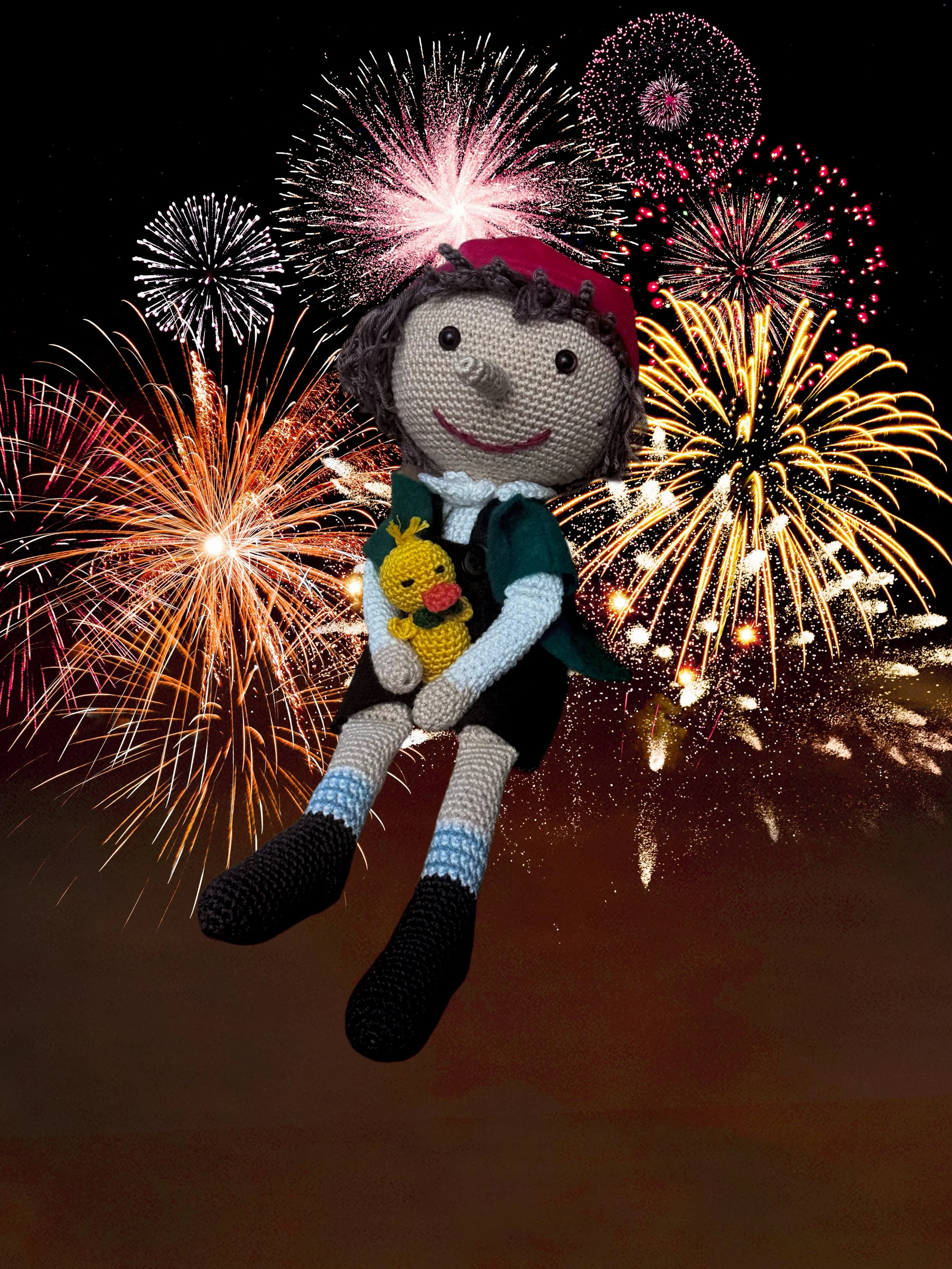 Pinocchio wurde von mir mit sehr viel Liebe gehäkelt. Er hat seine Freundin Gina dabei und Sicherheitsaugen.